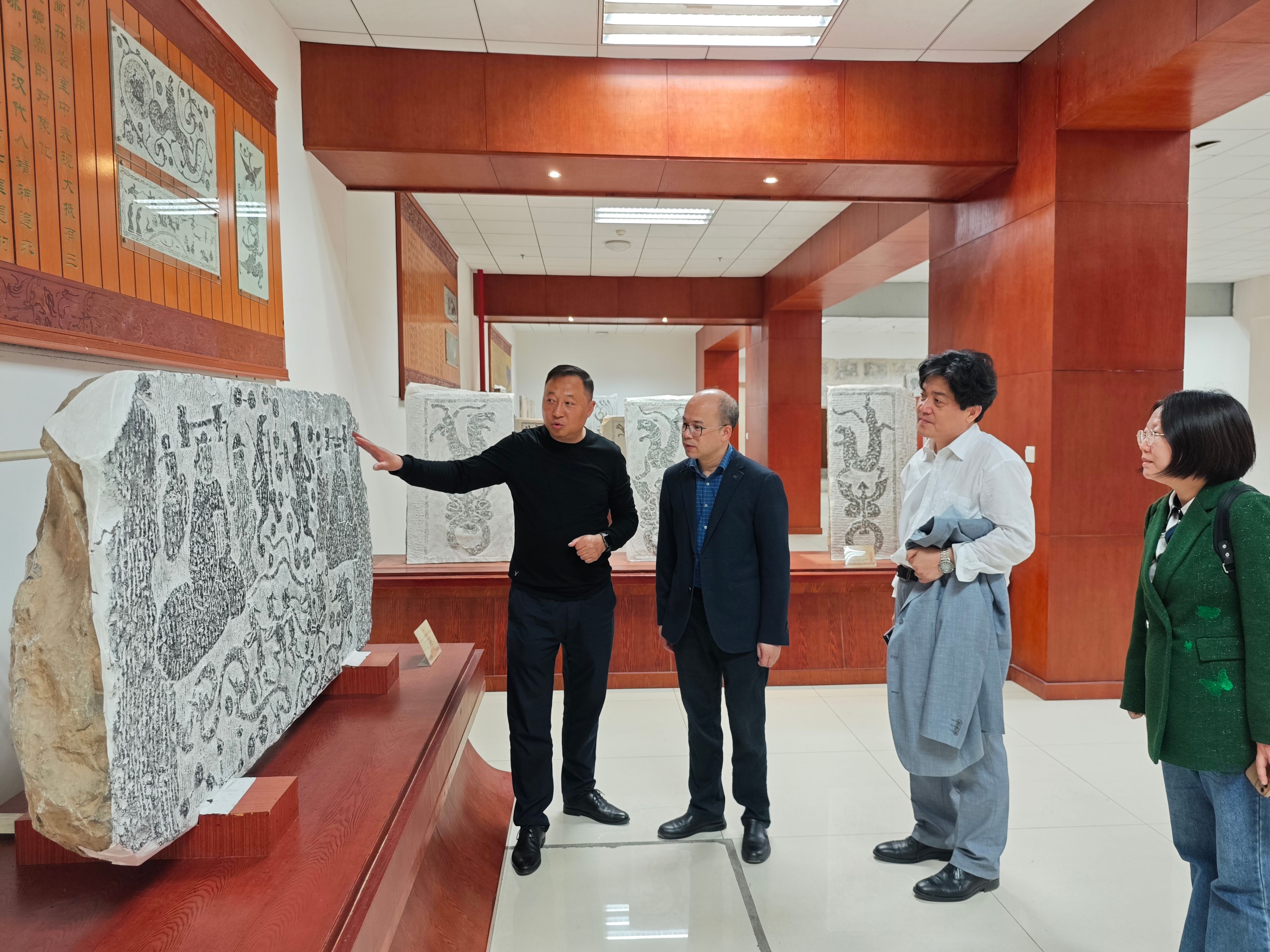 4月15日,团队首访南阳师范学院历史学院。高二旺院长系统分享了该院博物馆专业硕士点申报的成功经验,重点围绕学科定位、师资整合、地方文化资源挖掘及申报材料优化等核心议题展开交流。会后,团队实地参观了该校博物馆,对其依托汉代文物研究形成的特色展陈体系及实践教学平台建设成效给予高度评价。