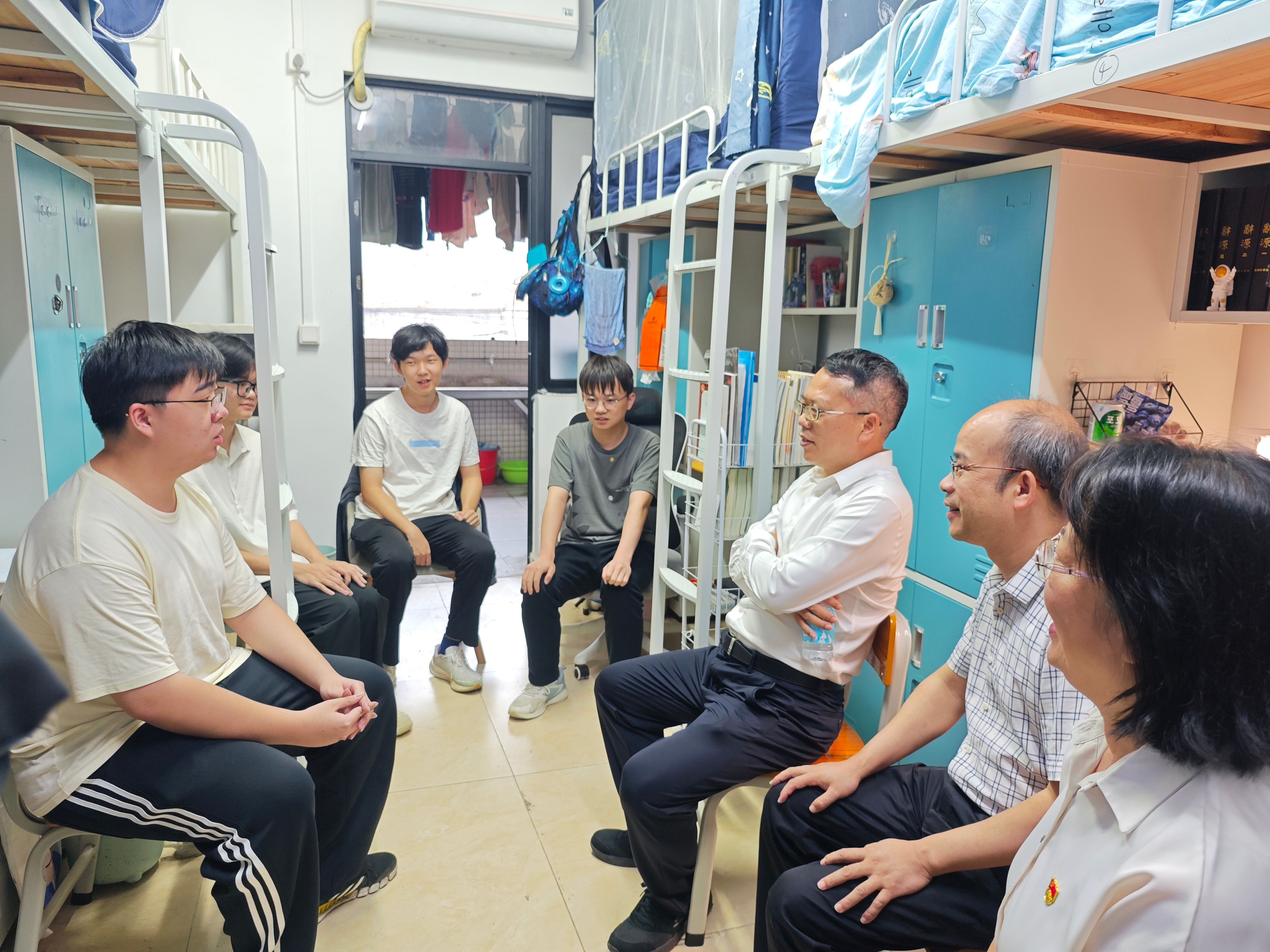 会后,胡文涛深入走访学生宿舍,实地了解学生思想动态、学习生活和就业等情况。