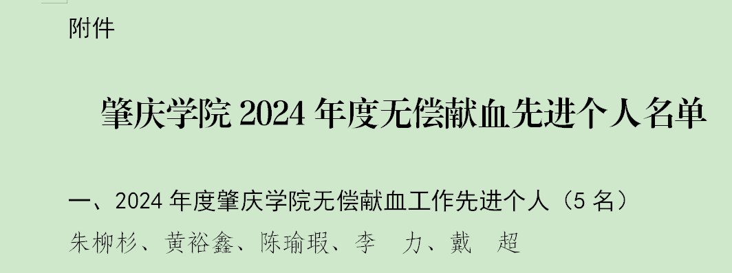 近日,学校下发了《关于表彰2024年无偿献血工作先进个人的决定》,我院辅导员陈瑜瑕老师获评2024年度肇庆学院无偿献血工作先进个人,杨婷等12名同学获评2024年度肇庆学院无偿献血积极分子,学院无偿献血工作取得了良好成绩。