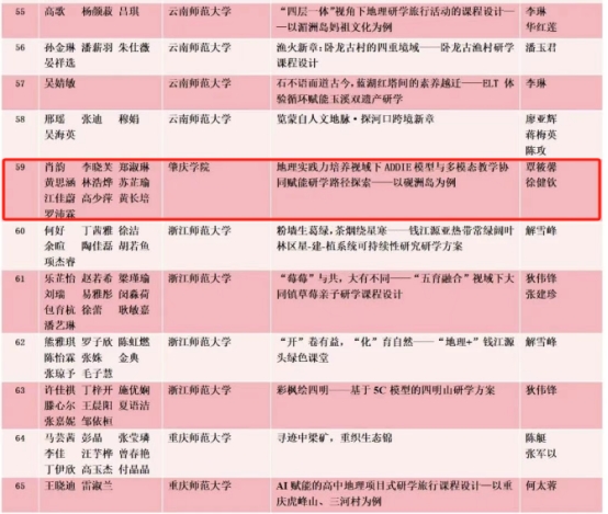 近日,九州杯研学大赛组委会公布《2025年全国研学课程设计大赛线上赛》获奖名单。其中,我院地理科学系覃筱馨、徐健钦老师指导的学生团队项目《地理实践力培养视域下ADDIE 模型与多模态教学协同赋能研学路径探索——以砚洲岛为例》获得2025年全国研学课程设计大赛特等奖,地理科学系刘迁迁老师指导的学生团队项目《基于探究式教学模式实践地理核心素养培养的研学旅行课程设计——以西江流域自然人文综合探究为例》获得二等奖,地理科学系张智萍老师指导的学生团队项目《岩壁天书·星湖秘境》获得三等奖。