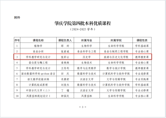 近日,学校公布肇庆学院第四批本科优质课程。其中,我院张彩云老师的《