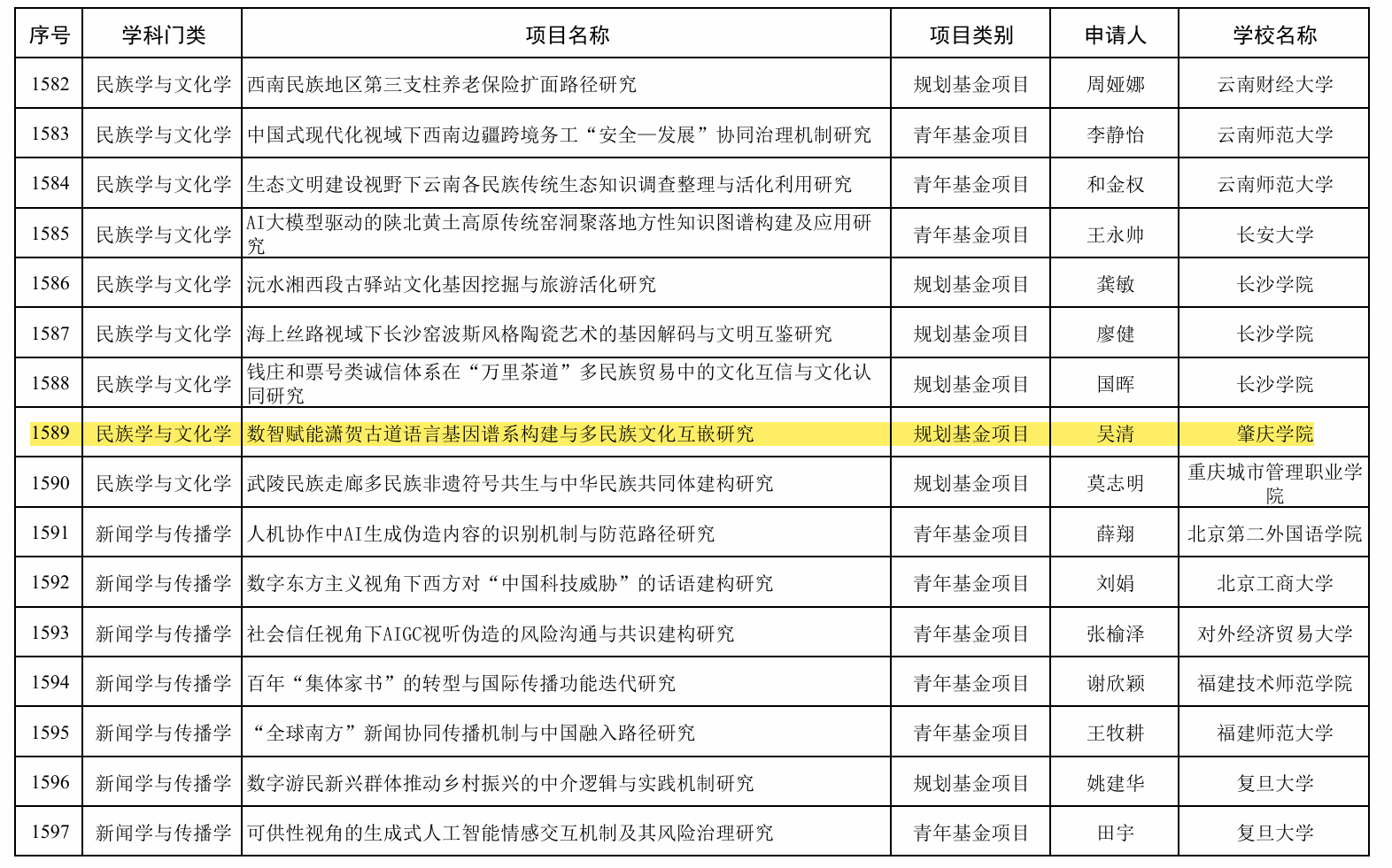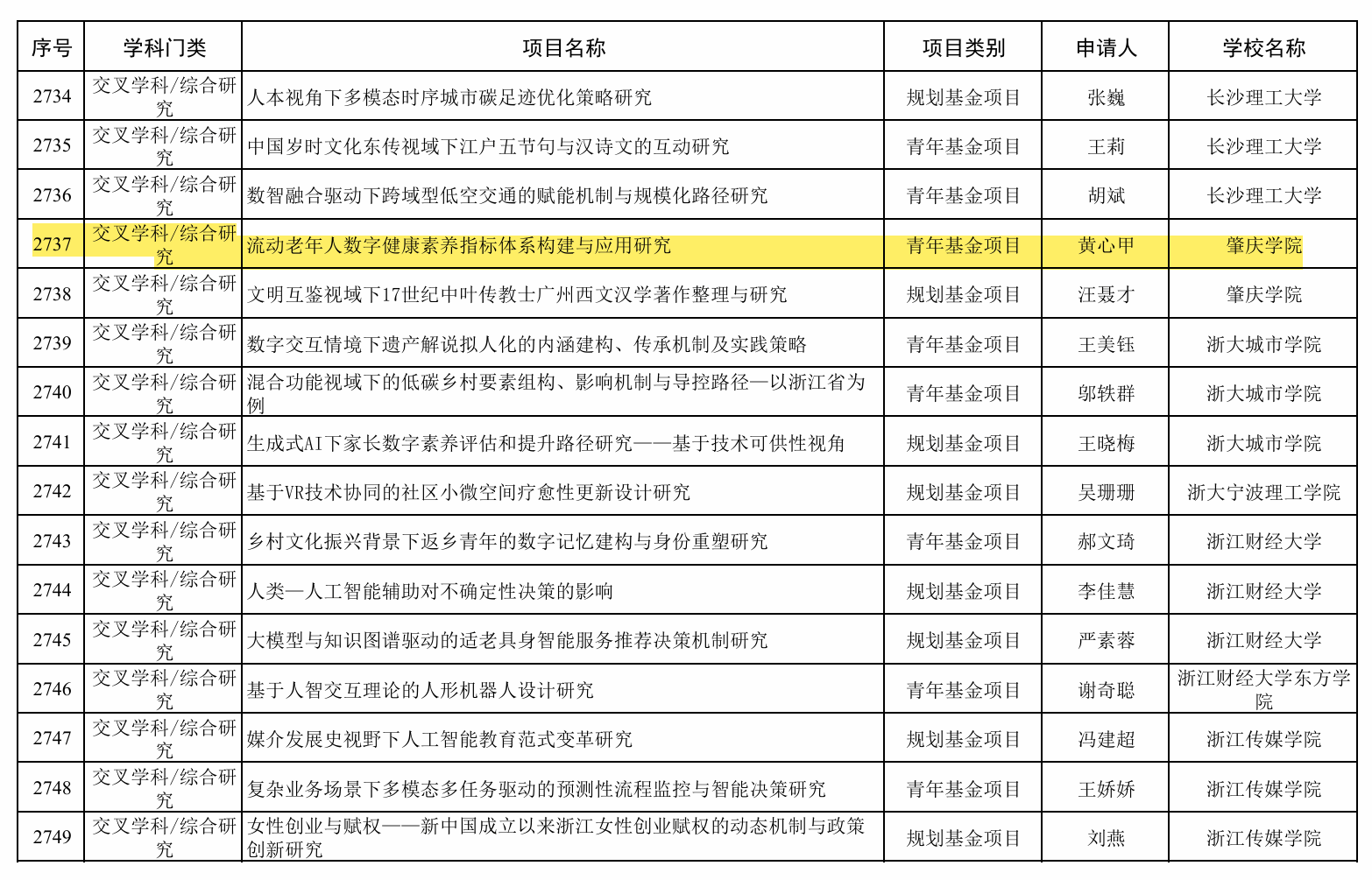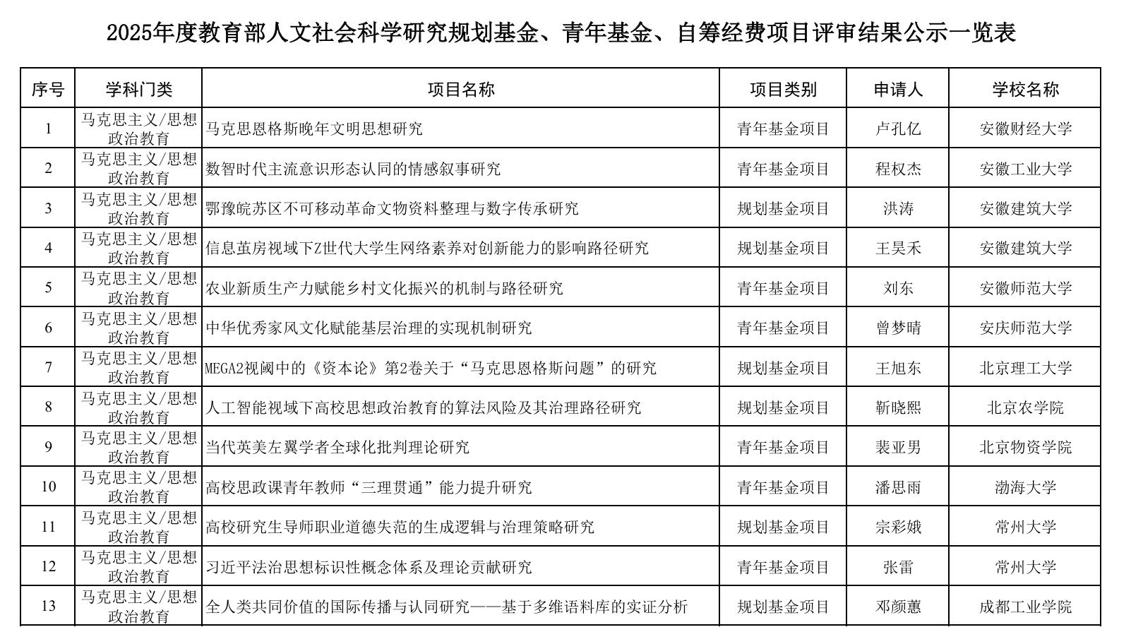 2025年度教育部人文社会科学研究项目评审结果(节选)