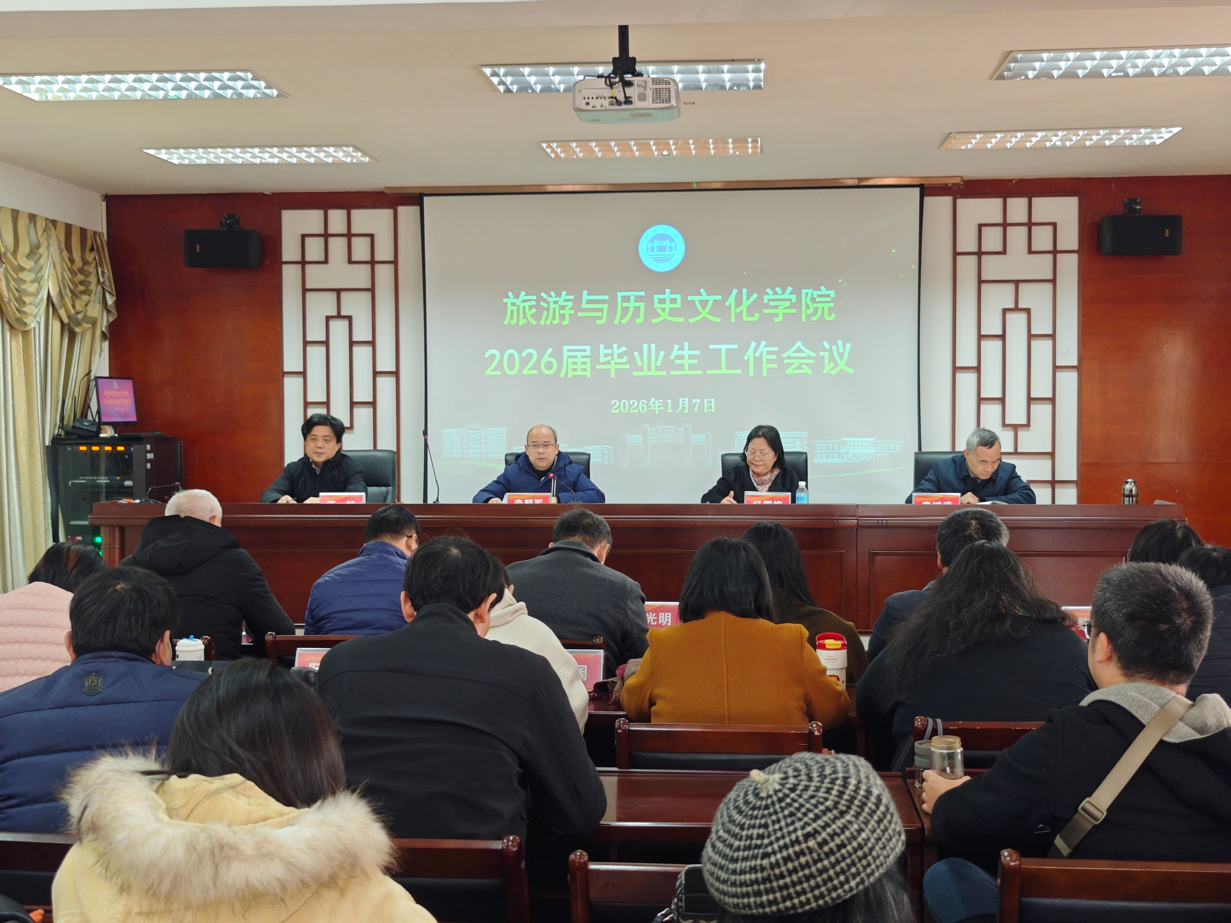 为精准对接就业市场需求,扎实推进毕业生高质量就业工作,近日,旅游与历史文化学院隆重召开2026届毕业生就业创业工作会议,全面部署本年度毕业生就业创业攻坚任务。会议由学院党委杨雪梅书记主持,学院领导班子和全体教职员工参加。