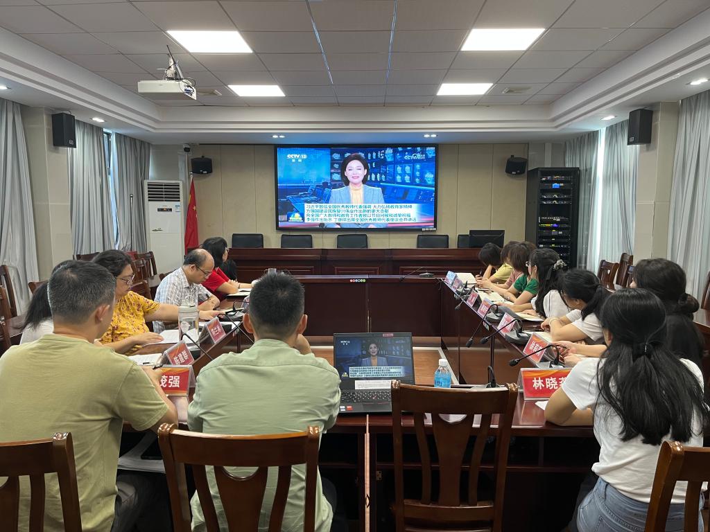 9月18日,william威廉中文官网召开以“矢志教育强国,潜心立德树人——学习贯彻习近平总书记给全国优秀教师代表致信的重要指示精神”为主题的党委理论学习中心组(扩大)学习会。杨雪梅书记主持,李朝军院长、郭栩东副院长以及党支部书记、教师代表参加。