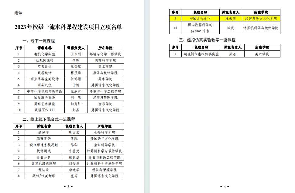 为贯彻落实《教育部关于一流本科课程建设的实施意见》(教高〔2019〕8号)、《广东省教育厅关于加强本科高校在线开放课程建设应用的意见》和《广东省教育厅关于强化课程思政建设一流课程的意见》等文件精神,按照《肇庆学院一流本科课程建设方案》(肇学院〔2021〕69号)安排,全面推进课程教学方法改革与创新,提高课堂教学质量,培育省级、国家级一流本科课程,我校在全校范围内开展了2023年校级一流本科课程建设项目申报遴选工作,经各二级学院教师和团队申报、专家组综合评审,全校公示,近日,学校公布2023年校级一流本科课程建设项目立项名单,其中,杜云南副教授的《中国古代史下》课程,获2023年校级一流本科课程(线上线下混合式)建设项目立项。