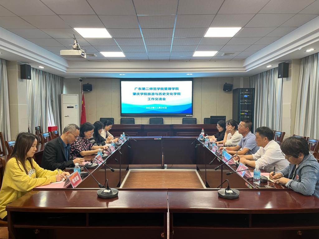 11月24日,广东第二师范学院管理学院副院长梅晓仁、旅游管理系主任杨春方、电子商务系主任孙楚、教务秘书卞芸芯一行到访我院。学院党委书记杨雪梅、副院长郭栩东、旅游管理系主任廖继武副教授以及陈海明副教授、教学秘书林晓燕出席交流会。