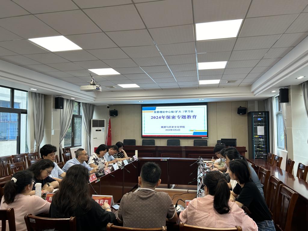 5月6日,旅游与历史文化学院举行党委理论中心组(扩大)学习会,开展保密专题教育。学院党委书记杨雪梅主持,副院长廖继武、王灿,副书记郑安徽、党支部书记、系部主任、辅导员、骨干教师参加。