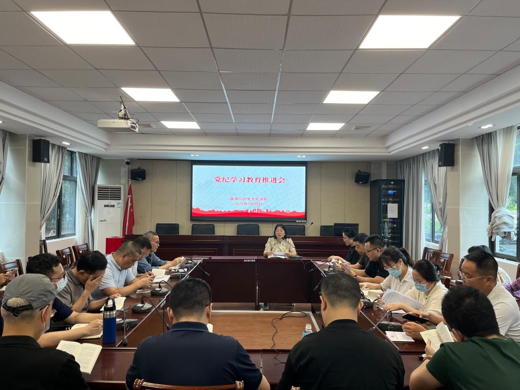 为进一步深入推进党纪学习教育,5月29日,旅游与历史文化学院在院大会议室召开党纪学习教育推进会。学院党委杨雪梅书记主持会议,郑安徽副书记、廖继武副院长、王灿副院长,党支部书记以及全体教师党员参加。