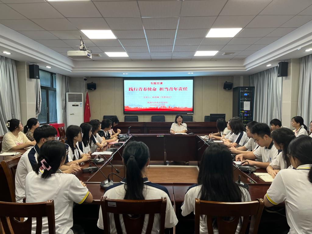 杨雪梅主讲专题党课《践行青春使命 担当青年责任》,带领毕业生党员深入贯彻学习习近平总书记关于新时代好青年的重要论述,为毕业生党员的未来发展指明方向,注入强大动力。首先,她对大家顺利完成学业,即将开启人生崭新阶段致以祝贺。她表示,毕业生党员要牢记党员身份、牢记母校嘱托、牢记青年使命,无论毕业去向何方,都要坚守初心使命,增强党性修养,勇担时代重任,主动将个人的理想追求融入国家发展大局中,把爱国情、强国志、报国行融入实现中华民族伟大复兴的历史伟业中,在新起点上扬帆远航、砥砺奋进。一是要铭记党纪,筑牢信仰之基。在新时代背景下,青年党员作为党的光辉历史与优良传统的继承者与弘扬者,应当深化对党纪党规的学习,构筑坚不可摧的思想长城,确保信仰之树常青;二是要锤炼修养,永葆党员本色。毕业生党员要持续提升自我,保持政治清醒和立场坚定,通过不懈的党性锤炼实践,确保党员队伍的先进性和纯洁性得以恒久保持;三是要砥砺前行,贡献青春之力。要敢于直面挑战,勇于开拓创新,以实际行动成为推动社会进步与发展的生力军。
