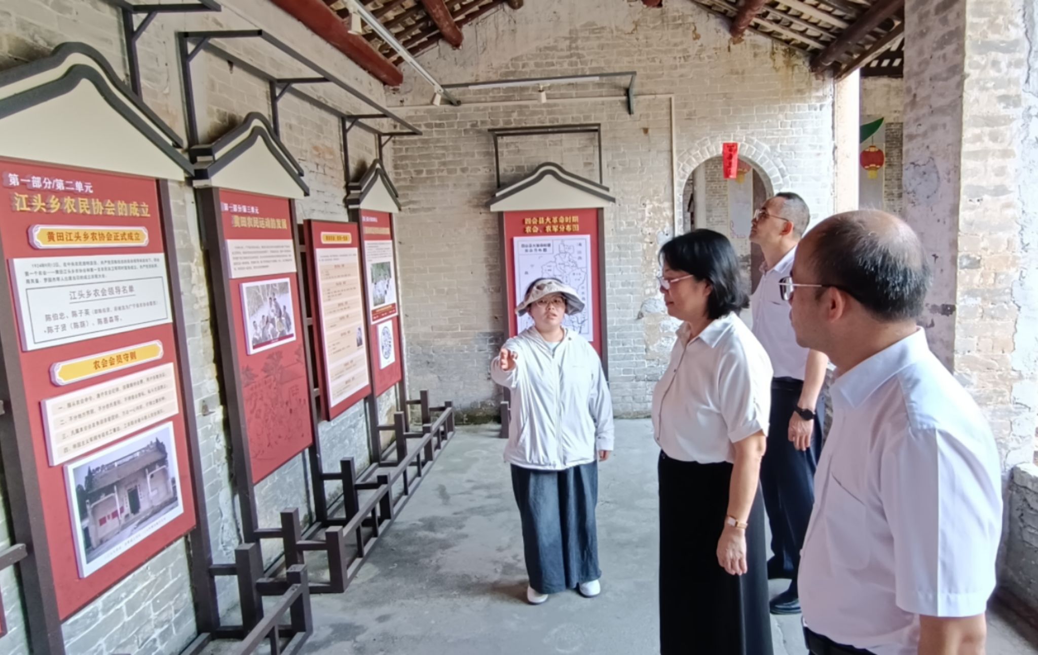 李朝军一行在黄田镇镇长邓健杰、宣传委员邓玉萍的陪同下,参观了四会市黄田镇江头乡农会旧址及陈伯忠烈士故居,通过观看革命史迹、图片展览,引导党员教师深刻感受革命先烈在农民革命运动时期血雨腥风中的宁死不屈和陈伯忠烈士追求平等、投身革命、创建农会、反对剥削、挺身为民、血洒绥江的坚定信念。