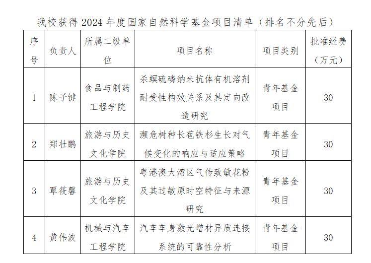 近日,国家自然科学基金委员会公布了2024年度国家自然科学基金项目的评审结果,我院获批青年科学基金项目2项,直接经费共60万元。