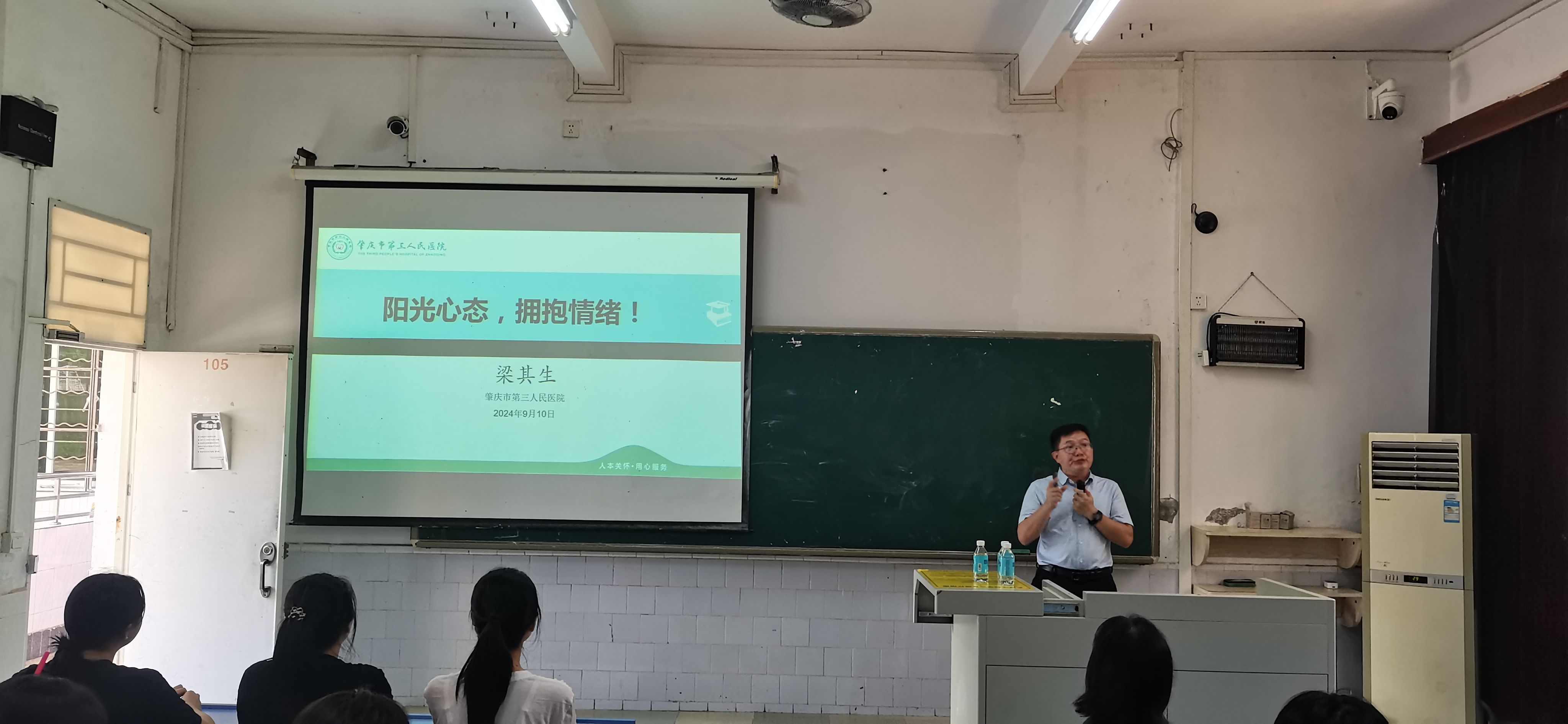 为帮助新生尽快融入大学新环境,明确心理健康教育的内容,积极开启大学生活,教育引导新生扣好第一颗扣子,9月10日,william威廉中文官网邀请肇庆市第三人民医院心理科梁其生主任主讲心理健康专题讲座。学院党委书记杨雪梅和全体2024级新生参加,学院团委书记朱婷主持。