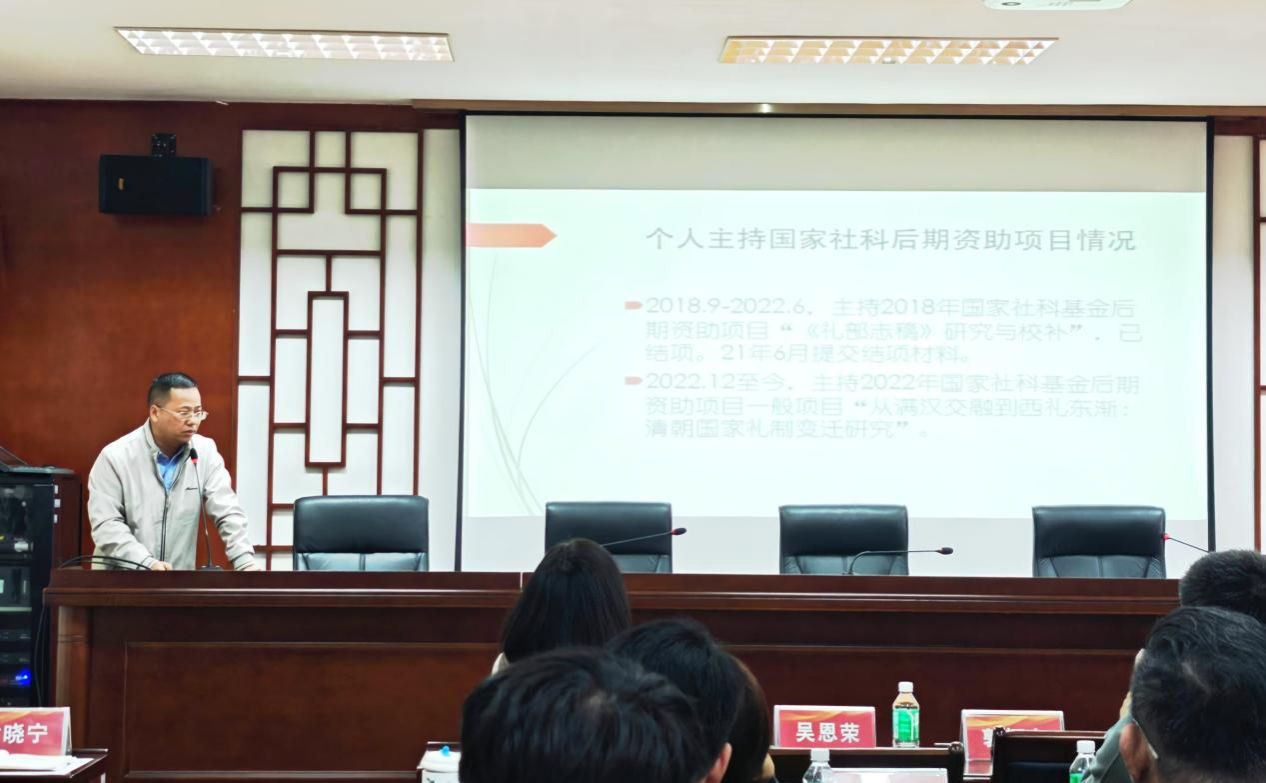 吴恩荣副研究员以《后期资助项目——又一重要科研支持渠道》为题,详细介绍了国家社科基金后期资助项目的概况、特点及优势。他强调,后期资助项目是不可忽视的重要科研支持渠道,尤其对于已取得阶段性成果但尚未结题的学者而言,后期资助项目能够提供有力的资金保障,助力研究工作的深化与完善。此外,他还指出,项目成功申报的关键在于观点、内容和研究方法的创新。他建议申报者注重研究的原创性和前沿性,确保成果能够填补学术空白,推动学科进步。