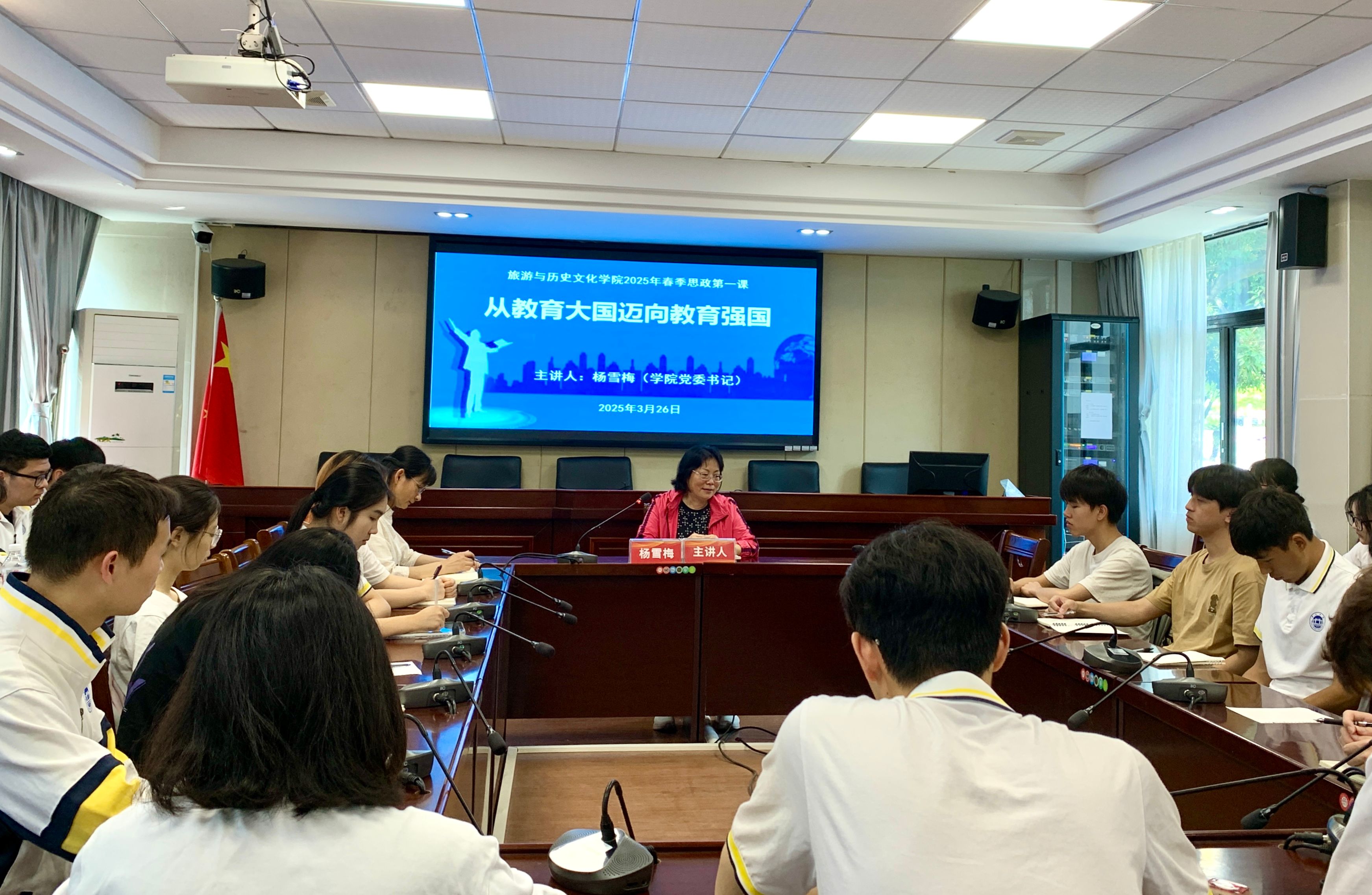 为落实立德树人根本任务,强化学生理想信念教育,3月26日,旅游与历史文化学院党委书记杨雪梅、院长李朝军分别讲授2025年春季学期“思政第一课”,为青年学子筑牢信仰根基,激发奋进力量。教师党员代表和2023级学生代表50多人参加。
