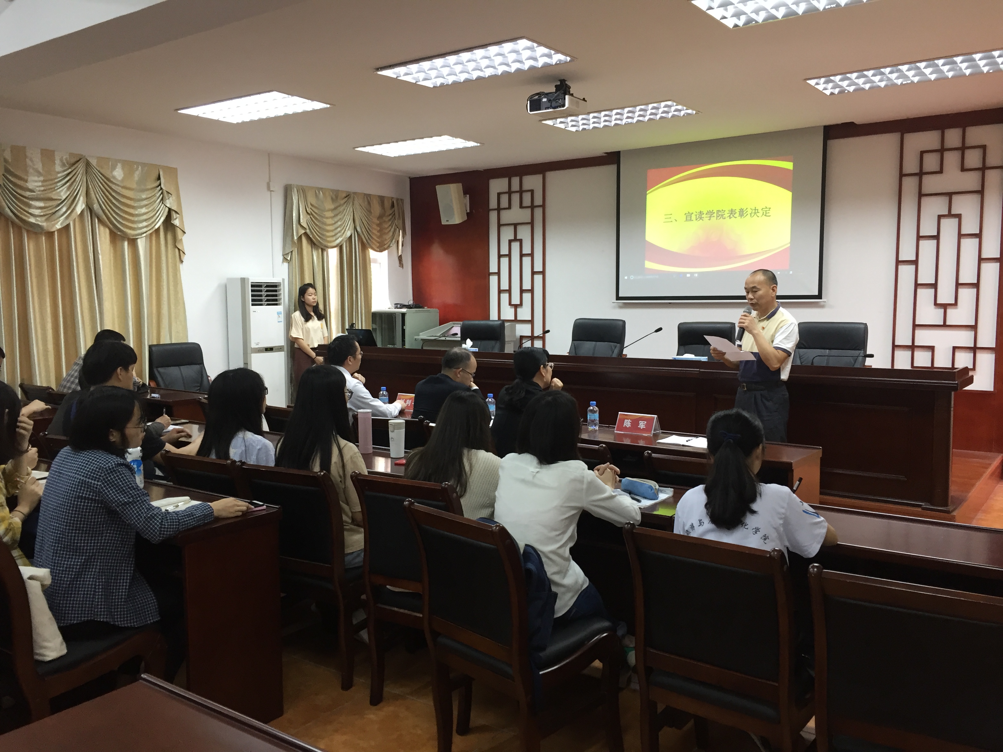 在2018年全国硕士研究生入学考试中,我院陈喜钠、姚奕睿等9名毕业生分别被上海大学、瑞士格里昂酒店管理学院等9所院校录取。刘利平副院长对2018年考研工作做了全面的总结,他希望同学们再接再厉,勇创佳绩。陈军副书记宣读了表彰决定,杨雪梅书记、李怀顺教授为考取研究生的同学颁发奖学金。