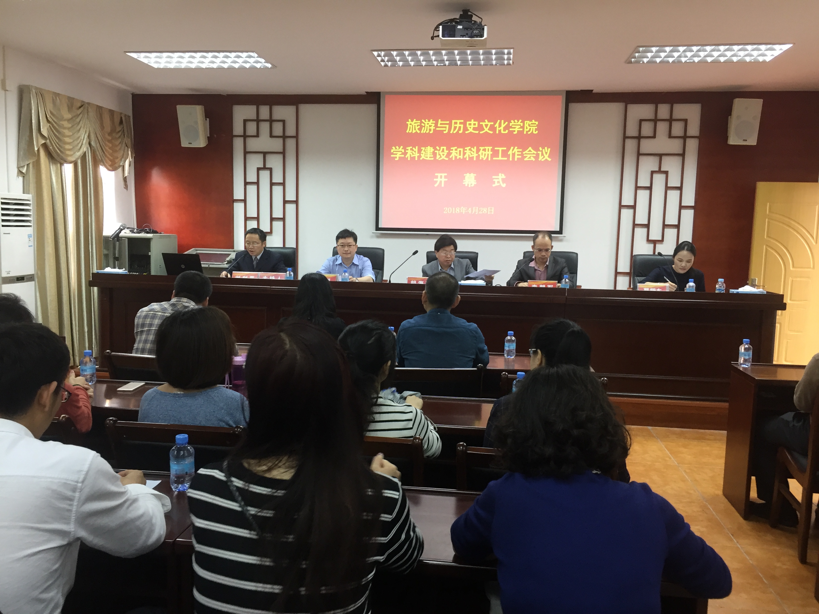 本网讯 4月28日,我院举行2018年度学科建设与科研工作会议开幕式,正式拉开为期两个月的学科建设和科研工作会议帷幕。中国社会科学杂志史学部主任、《历史研究》常务副主编周群博士,校科研处、社科处、校地合作处处长胡海建出席,学院副院长李朝军、党委书记杨雪梅、党委副书记陈军、全体教师以及部分学生代表共80多人参加,刘利平副院长主持。