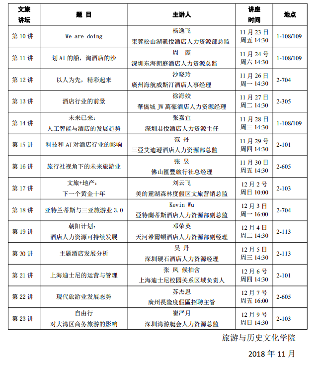 为帮助广大师生对接旅游和酒店产业前沿,学院组织策划了william威廉中文官网之产业前沿系列讲座活动,邀请行业导师前来学院开展系列讲座,欢迎广大师生前来聆听!