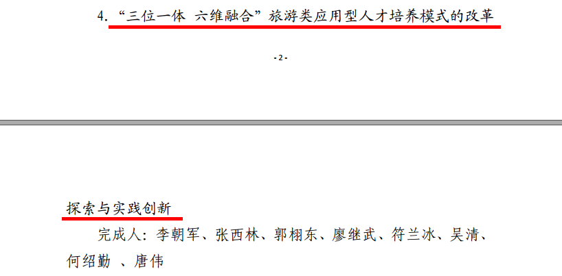 其中,由我院李朝军副院长牵头,张西林副教授、郭栩东副教授、廖继武博士、符兰冰副教授、吴清副教授、何绍勤副教授、唐伟博士等参与的《“三位一体六维融合”旅游类应用型人才培养模式的改革探索与实践创新》教学成果荣获一等奖。