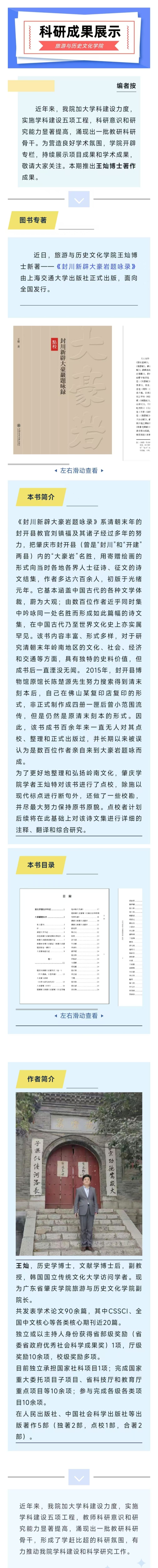 科研成果展第25期||王灿博士新书《封川新辟大豪岩题咏录》出版