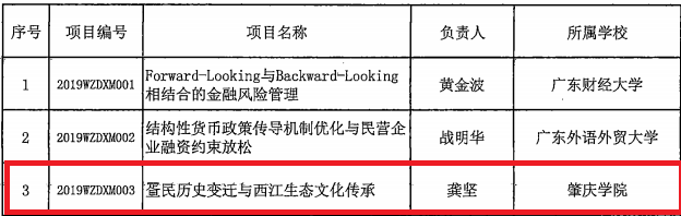 年度普通高校重点科研平台和项目立项通知,我院龚坚博士主持的项目《疍民历史变迁与西江生态文化传承》获得
