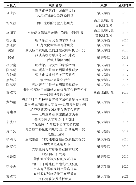 教而不研则浅,研而不教则空。科研是促进教师专业化发展的有效途径,也是学校持久发展的不竭动力。旅游与历史文化学院在近年来的教育教学工作中,充分发挥了教育科研在工作中的地位与功能,运用教育科研促进了教师的专业发展,以教师的专业发展有效促进了学生素质的发展。以下是我院在2015年1月至2021年9月期间科研立项情况。