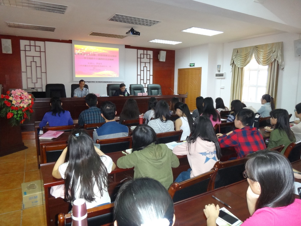 苏教授从法治的角度,通过众多详实的案例、精辟的见解,精彩解读了党的十八届四中全会对依法治国提出的新思路和新要求。通过此次讲座,我院学生党员、入党发展对象深入全面地理解了坚持中国特色社会主义法治道路的必要性和全面推进依法治国新理念的深刻内涵,进一步提升了自身的政治理论素养,增强了心中的法治信仰,为积极树立高远志向,争取做一个知法、懂法、守法的优秀共产党员指明了方向。
