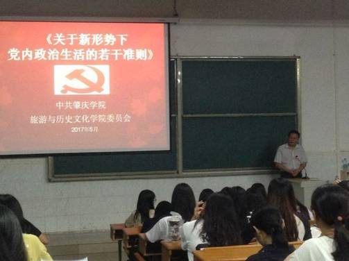 为加强理想信念教育,健全党内政治生活,切实做好基层党建提升年各项工作,根据党委工作计划和理论中心组学习计划,我院于5月份先后在中心组学习、星湖校区和主校区学生分别组织专题党课,解读十八届六中全会通过的关于新形势下党内政治生活若干准则》(简称“新准则”),党课由党委副书记雷志科主讲,我院理论学习中心组成员、学生党员、发展对象和入党积极分子等共约400人参加