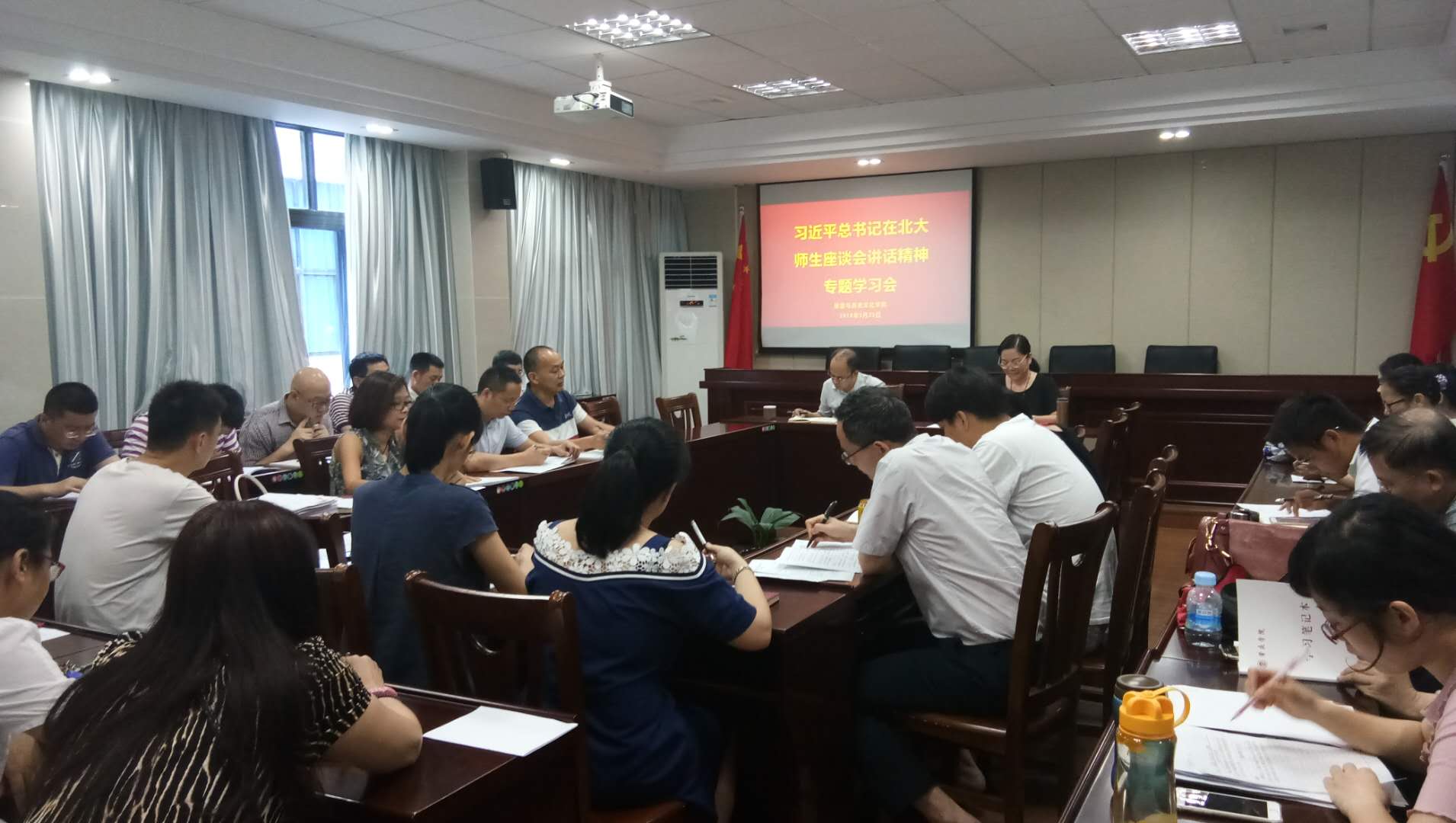 5月23日,学院在大会议室举行习近平总书记在北大师生座谈会讲话精神专题学习会,全体教师参加。党委书记杨雪梅做学习辅导。