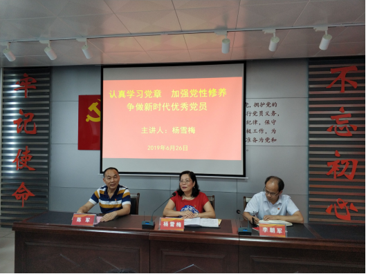 主题党日活动内容丰富。首先,全体教师党员首先观看视频《初心,从未改变》,重温近代到现代以来革命先烈、前辈们初心不变的奋斗故事;接着,学院党委为上半年入党的教师党员颁发精心准备的政治生日贺卡,送上衷心祝福和殷切希望;然后,同志们一起诵读《党章》,杨雪梅主讲《认真学习党章,加强党性修养,争做新时代优秀党员》专题党课,要求全体党员教师学习党章、贯彻党章、维护党章,时刻坚定政治站位,自觉维护以习近平为总书记的党中央的领导;时刻以习近平新时代中国特色社会主义思想为指导,牢记党和人民的重托,坚持立德树人,努力提高应用型人才培养质量,在建设特色鲜明的高水平应用型综合大学中建功立业。最后,李朝军带领党员们重温入党誓词,牢记入党时的铮铮誓言。