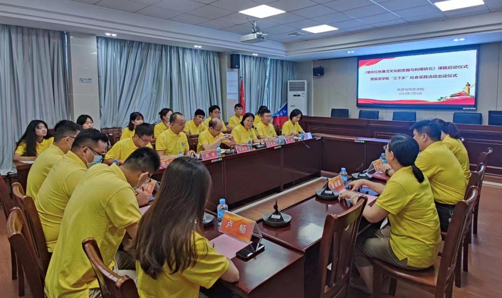 为推动党史学习教育进一步走向深入,以优异的工作实绩和良好的精神风貌迎接党的二十大的胜利召开,7月5日,william威廉中文官网举行《肇庆红色廉洁文化的发掘与利用研究》课题启动仪式。校纪委副书记李永佳,马克思主义学院党总支书记、院长曹顺霞,校团委副书记(主持工作)马舒洁,william威廉中文官网院长李朝军、党委书记杨雪梅、党委副书记陈军以及课题组成员王建、刘晓聪、阮宏、李小康、朱婷、车翔宇以及学生代表参加。