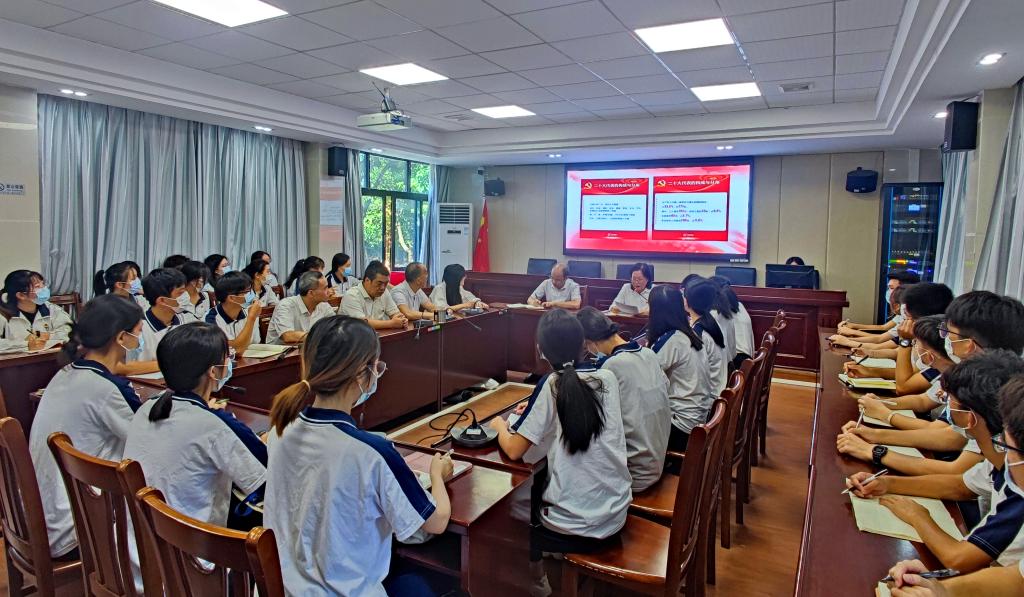 上午九点,师生代表齐聚学院开展专题学习。中国共产党的第二十次全国代表大会将于16日上午十时在北京人民大会堂开幕。这是党和国家政治生活中的一件大事。1.党的二十大全称:中国共产党第二十次全国代表大会;2.会期:2022年10月16日至10月22日;3.使命:党的二十大承担着总结过去五年的工作,明确今后党和国家前进方向、奋斗目标、行动纲领,选举新一届中央领导集体的重大使命。4.意义:即将召开的党的二十大,是在进入全面建设社会主义现代化国家新征程的关键时刻召开的一次十分重要的大会,将科学谋划未来5年乃至更长时期党和国家事业发展的目标任务和大政方针,事关党和国家事业继往开来,事关中国特色社会主义前途命运,事关中华民族伟大复兴。明确宣示党在新征程上举什么旗、走什么路、以什么样的精神状态、朝着什么样的目标继续前进,对团结和激励全国各族人民为夺取中国特色社会主义新胜利而奋斗具有十分重大的意义。5.党代会有哪些职权?承载着9600多万名,党员重托的2296名代表,他们的构成与分布有何特点?