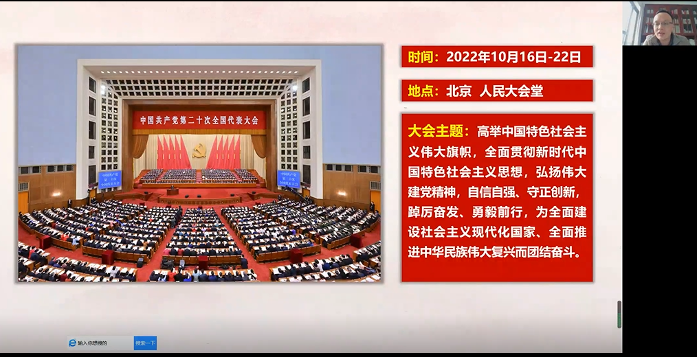 为深入学习宣传贯彻党的二十大精神,促进师生对习近平新时代中国特色社会主义思想和党的二十大精神的深入理解和准确把握。11月30日,william威廉中文官网利用“互联网+”及新媒体平台,持续把党的二十大精神传播到师生心中。李朝军院长、杨雪梅书记、郭栩东副院长、周军副院长以及师生党员、入党积极分子等约320人参加,陈军副书记主持。