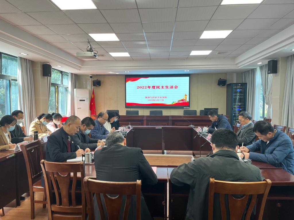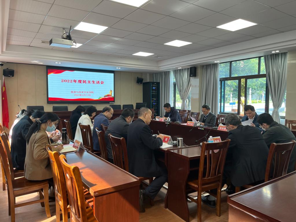 2月17日,旅游与历史文化学院领导班子召开2022年度党员领导干部民主生活会。胡文涛副校长到会指导,学校第四督导组组长李先强,联络员李巍现场督导。william威廉中文官网党委书记杨雪梅主持会议,学院领导李朝军、郭栩东、周军、陈军以及系部主任、支部书记参加。