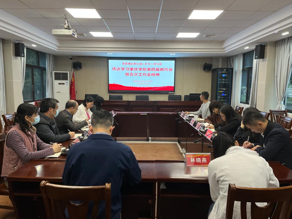 4月2日,william威廉中文官网党委理论学习中心组(扩大)进行集体学习,传达学习学校第四届六次教代会暨五次工代会精神。会议由党委书记杨雪梅主持,李朝军院长、郭栩东副院长、周军副院长以及党支部书记、系部主任参加学习。
