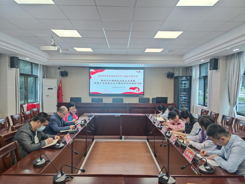 为深入学习贯彻习近平新时代中国特色社会主义思想,扎实开展主题教育,5月12日,william威廉中文官网党委理论学习中心组召开扩大学习会,专题学习《习近平新时代中国特色社会主义思想专题摘编》。本次学习围绕“习近平新时代中国特色社会主义思想实现了马克思主义中国化新的飞跃”这一主题,党委书记杨雪梅主持,李朝军院长、郭栩东副院长、周军副院长以及党支部书记、系部主任参加。