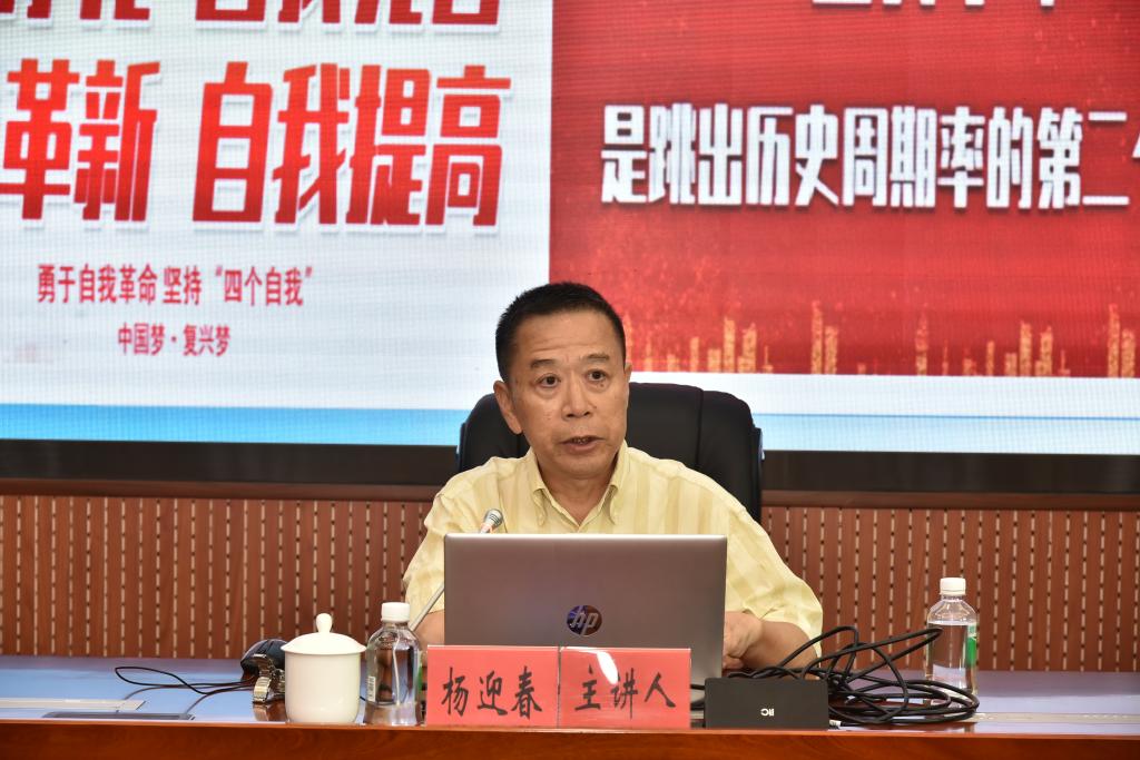 原肇庆学院党委宣传部统战部部长杨迎春教授作题为《加强党的纪律建设 推进党的自我革命》专题辅导讲座。他通过深厚的理论基础和深刻的案例分析,分别阐述了三方面的内容:一是解决大党独有难题,必须勇于自我革命;二是纪律建设是党进行自我革命的利器;三是要把纪律规矩转化为政治自觉、思想自觉、行动自觉。他强调,作为党员干部,必须认真学纪,准确知纪;增强自制,慎独慎微。严明党的纪律,首先要严格遵守党章;加强党性修养,要严守政治纪律、组织纪律、廉洁纪律、群众纪律、工作纪律和生活纪律等六大纪律。