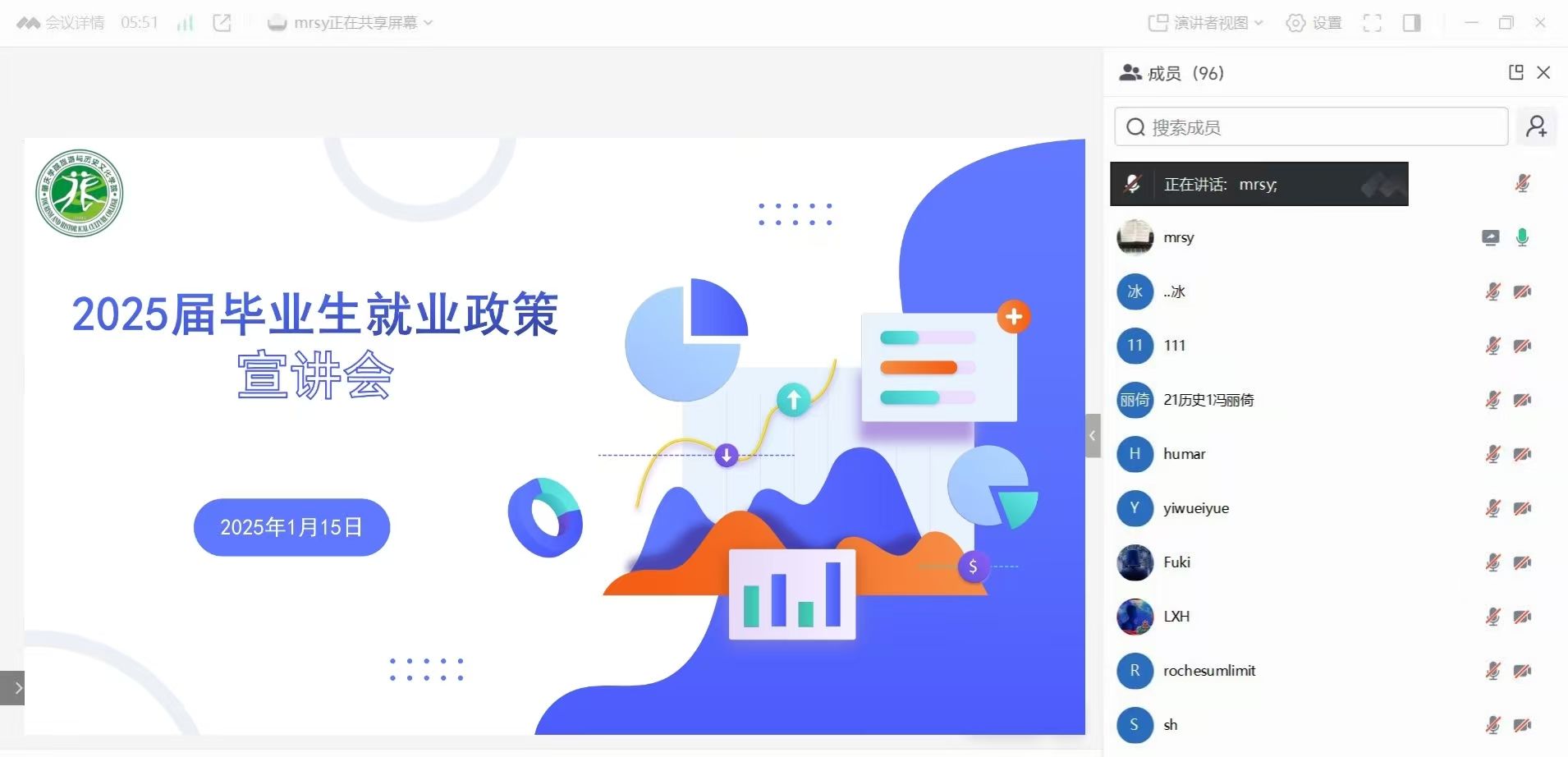 为帮助2025届毕业生精准把握就业政策、明晰就业方向,1月15日,我院通过线上会议形式举办2025届毕业生就业政策宣讲会,全院90余名应届毕业生参与本次会议,会议由慕容诗韵老师主讲。