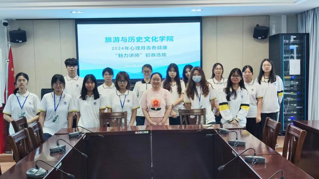 为动员和号召大学生关注生殖健康问题,选拔优秀大学生讲师参加“魅力讲师”校赛。4月22日,旅游与历史文化学院学生健康促进委员会在学院210会议室举行大学生心理健康教育宣传月活动之青春健康“魅力讲师”初赛选拔。本次比赛共有9位选手参加,心理辅导站站长陈瑜瑕老师和郝震宇、胡玉燕、梁馨文和徐蔚蓝四位学生骨干担任评委。